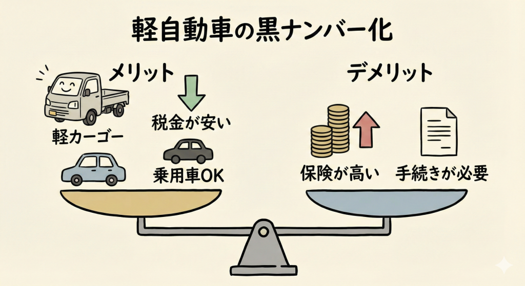 軽自動車を黒ナンバーにするデメリットと注意点
